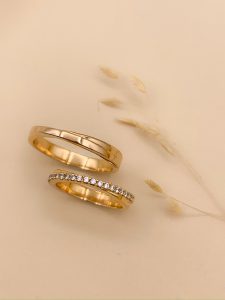 1- Nas alianças para clientes que compram o anel de noivado com a gente.